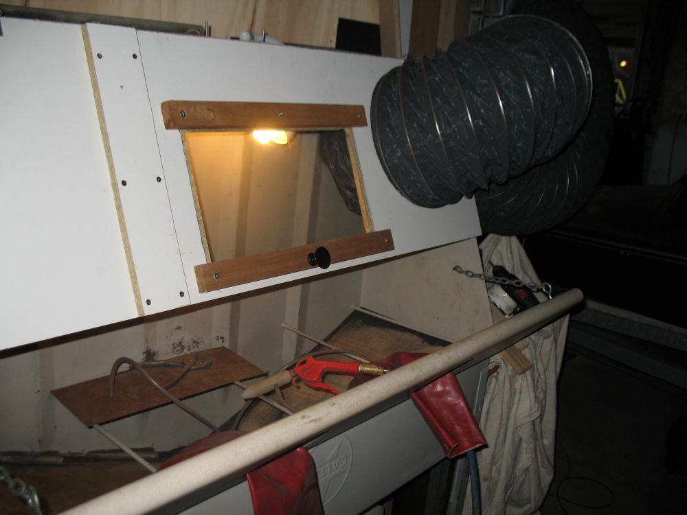 Works ok (with some obvious flaws, granted), but lucky I found the fan & ducting for TOXIC dust extraction out of the shed, via the roof spinner! I also had to put a ceiling fan speed controller on the fan, as I could hear the grit going out as well as the dust!