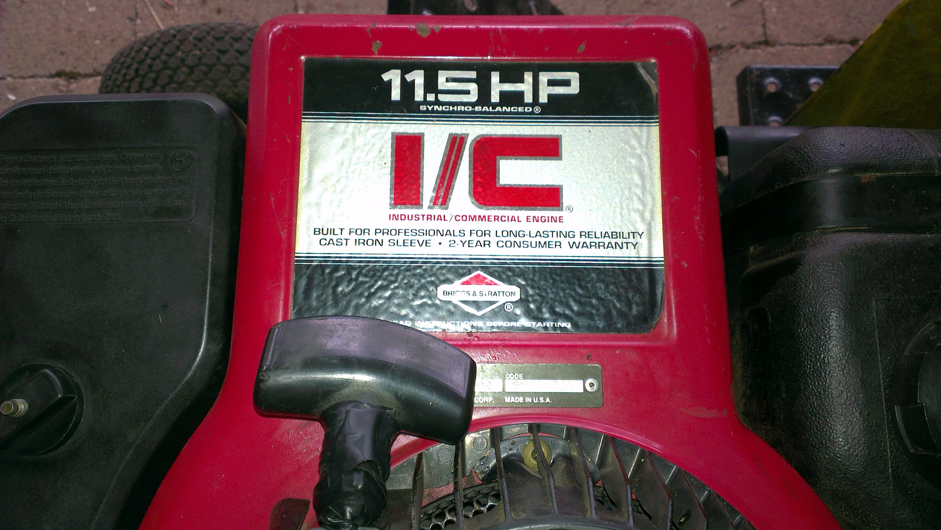 Hi Grumpy and Joe, Thanks for the advice so far. Below is a photo of the engine. ![[Linked Image]](https://www.outdoorking-forum.com.au/forum/uploads/usergals/2013/04/full-6461-10657-briggs_11.5hp_01.jpg) Here is a photo of the mower: Regards, Andy