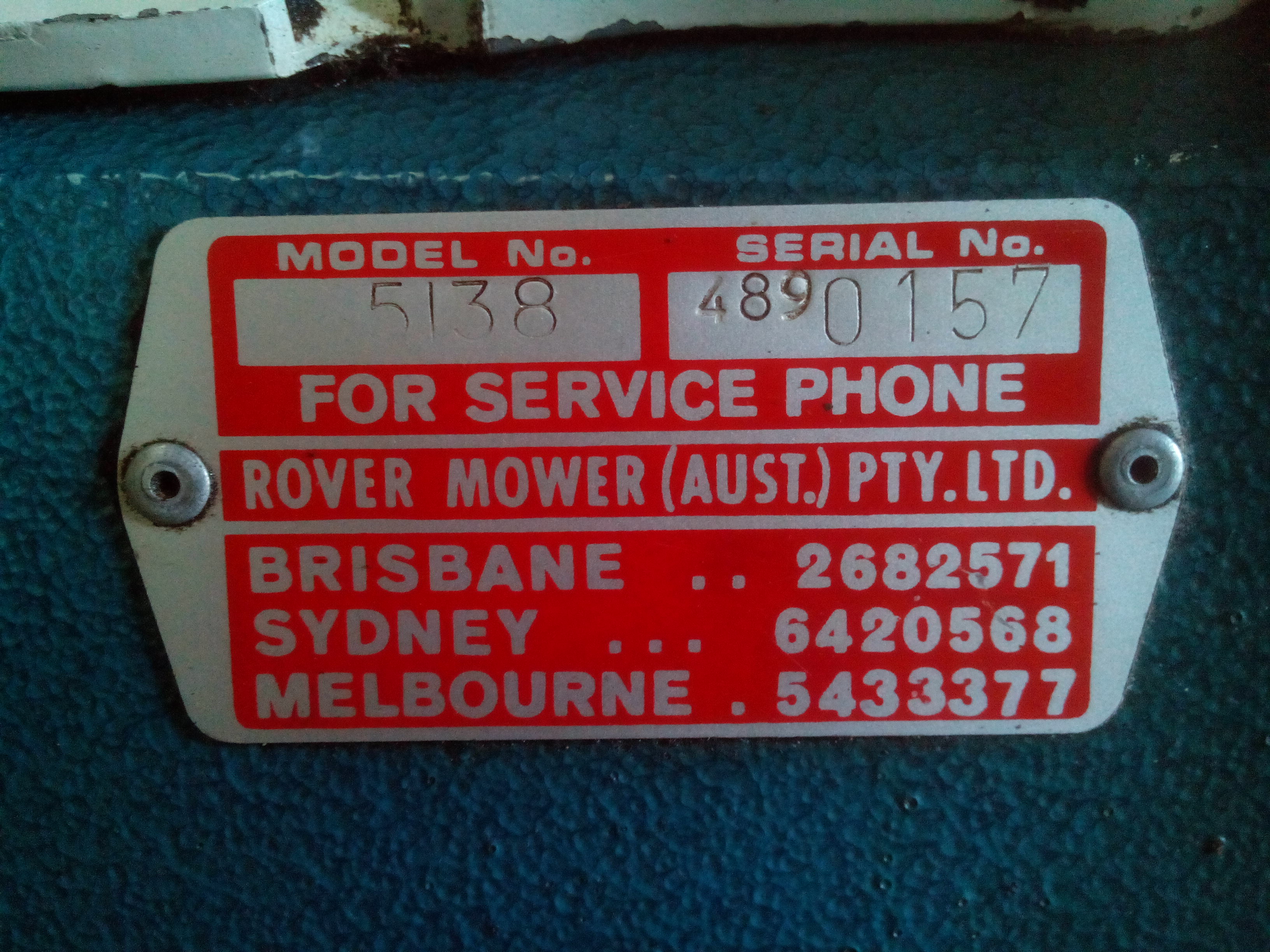 I have fond memories of mine too, my reasons are a little different though. We had just bought our dirt farm and I found it at a swap meet for $100. I took it home expecting to be told it was old and crappy. I fired her up and was driving up and down the street when the Mrs. came home with a box of crownies. We spent the afternoon taking turns driving up and down our quiet street cutting random nature strips drinking beer! She has since staked a claim on it. Anyway, I have put the rover book somewhere so secure I can't find it and this stinking internet won't let me up load pics but my model number is 5127 and serial number is 436 0593.